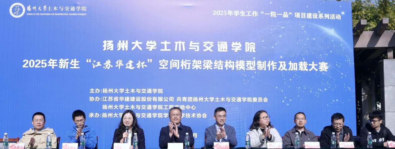 11月12日,由江蘇華建與揚(yáng)州大學(xué)土木與交通學(xué)院聯(lián)合主辦的2025年“江蘇華建杯”空間桁架梁結(jié)構(gòu)模型制作及加載大賽,在揚(yáng)州大學(xué)揚(yáng)子津校區(qū)隆重開幕。建工控股集團(tuán)黨...